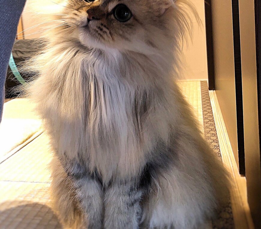 ふさふさの胸元やお行儀よく揃えた両手も心をくすぐるポイントですね。こんなアプローチをされたら「ナデナデせずにはいられない」なんて気持ちになりそうです……!