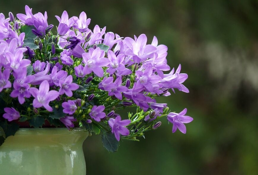 オトメギキョウはベル形の花を咲かせる可愛らしい多年草。パープルカラーの花を株いっぱいに咲かせ、可愛らしさと同時に、シックで大人っぽい雰囲気も感じられます。