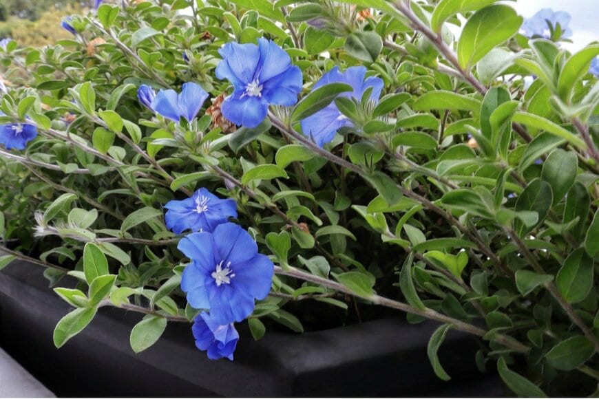 爽やかなブルーの花がオシャレなエボルブルスは、秋まで花が咲く多年草(地域により一年草扱い)です。長い枝先に花を咲かせるため、ハンギングでも楽しめます。