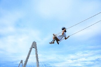 内灘町のランドマーク「サンセットブリッジ」のたもとに建つ道の駅で、2022年7月7日にリニューアルオープン。シンボルの絶景ブランコをはじめ、日本海や河北潟、遠くには白山や立山連峰を望む抜群のロケーションです。