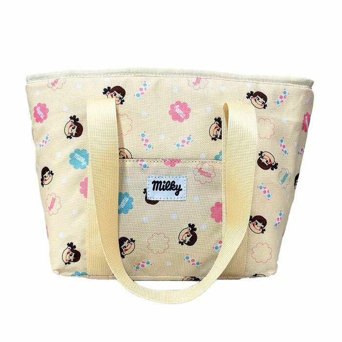 ミルキー柄のデザインがポップでキュートなトートバッグです。保冷機能が付いているため、お弁当やサンドイッチなどの軽食、おやつなどを入れる際にもぴったり。外側にはポケットが設置され、ハンカチやティッシュなどを入れられます。