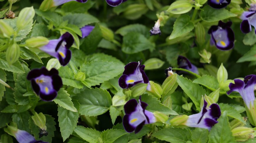 一緒に植えるリーフプランツは、緑が鮮やかなヘデラやプミラ、ワイヤープランツなどがオススメ。ホワイトやパープルのバコパやツルニチニチソウを合わせると、さらに華やかな寄せ植えになりますよ。