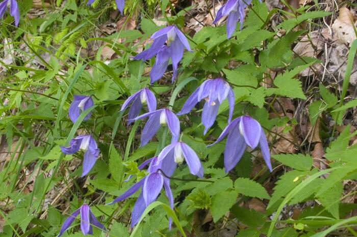 細長いブルーの花弁をうつむきがちに咲かせるアルピナ。半開きに咲く姿が個性的で、ナチュラルで落ち着いた印象を与えます。一季咲きの旧枝咲きタイプです。