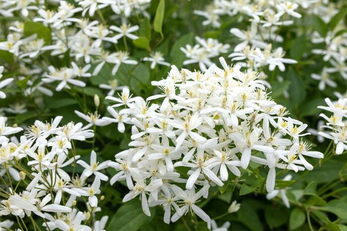 レクタは2~3センチほどの小花が可憐。小花のクレマチスは近年人気上昇中で、野趣あふれる花姿が魅力です。一季咲きの新枝咲き。サイズがコンパクトなので低いフェンスにオススメです。