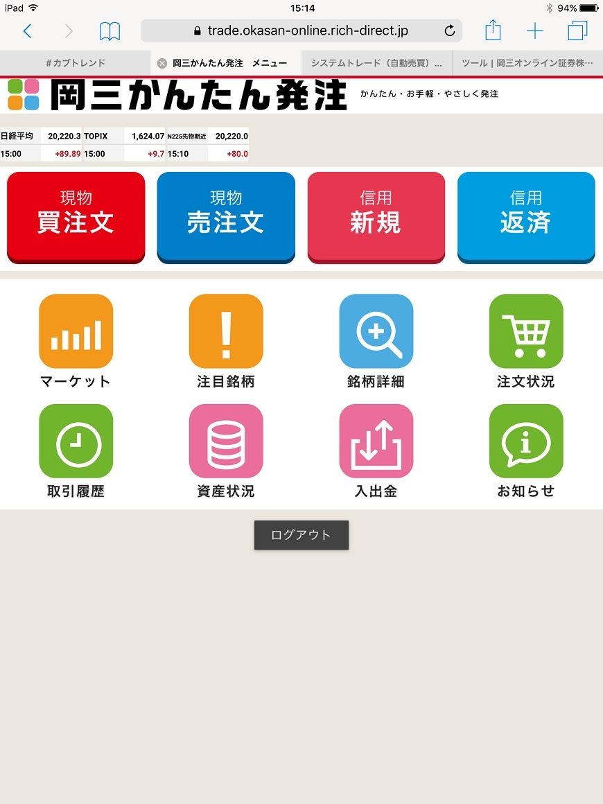>>岡三オンライン証券の公式ページへ(キャンペーンコード入力+口座開設+5万円以上の入金で現金5,000円プレゼントのキャンペーン実施中! ※2018年3月31日口座申込分まで)