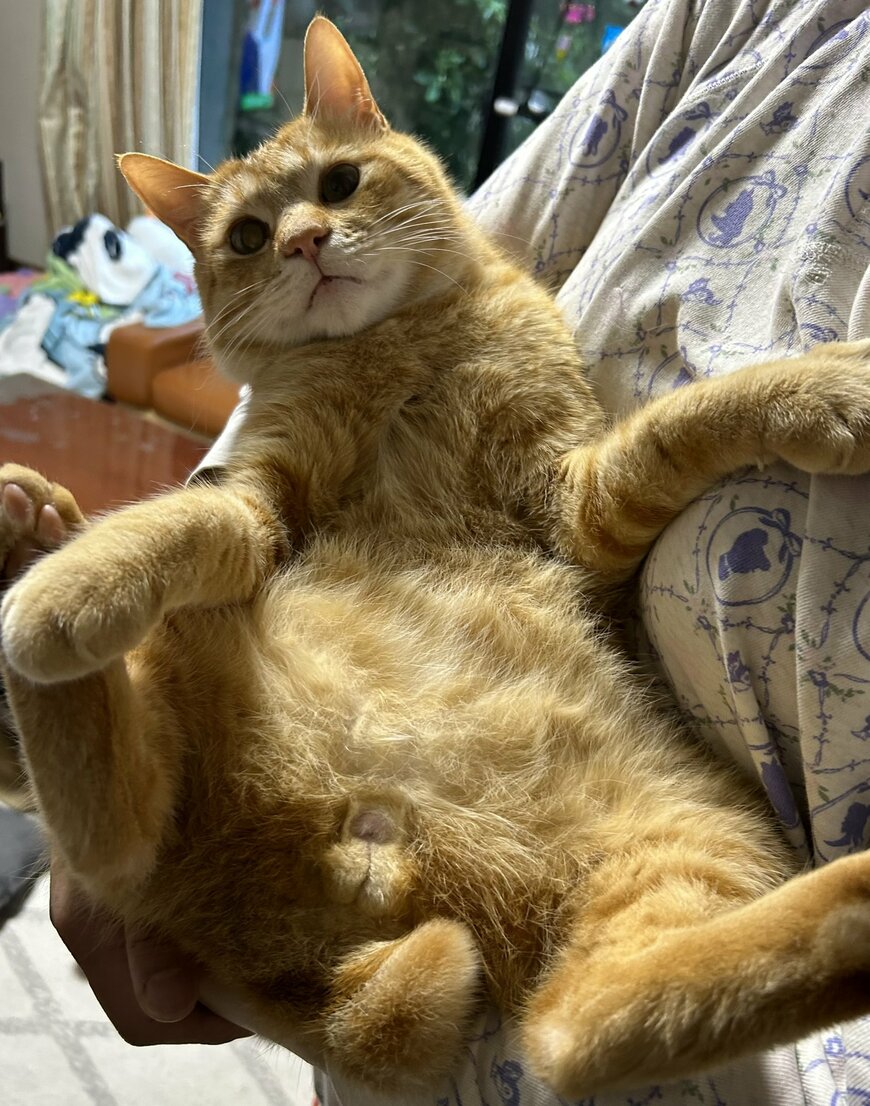 猫の「リチャード」くん、モフモフおなかを見せた「抱っこ姿」がかわいい