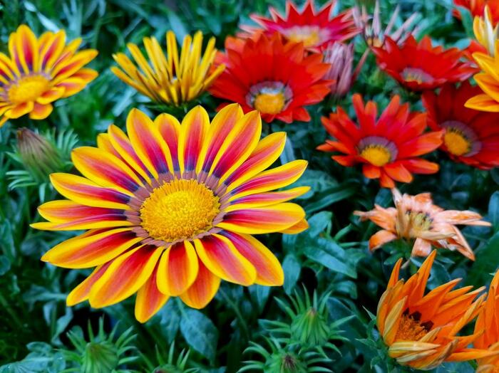 ガザニアは個性豊かな花色が人気の多年草、品種によっては一年草です。