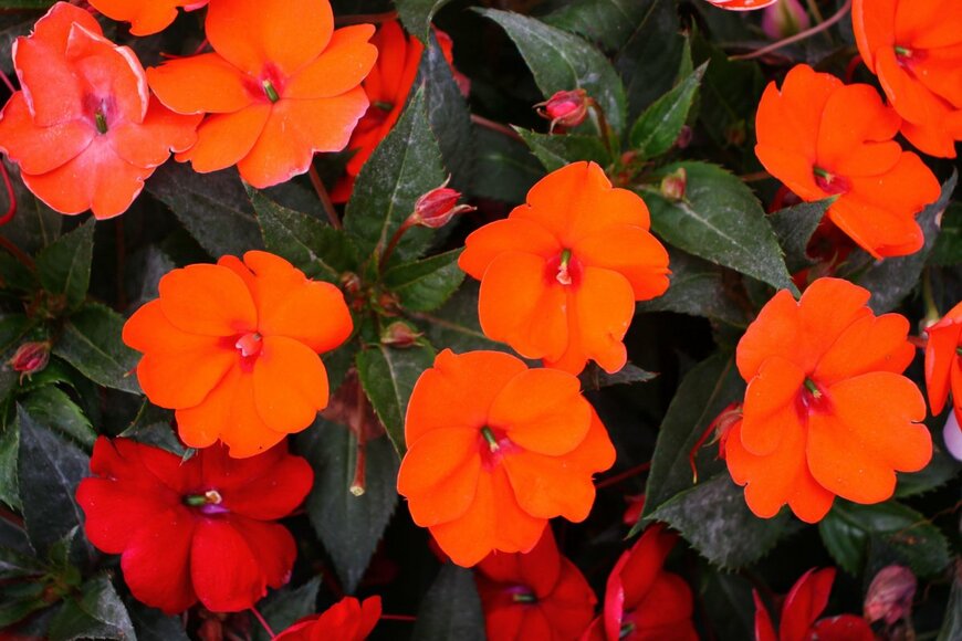 北向きの玄関や日当たりが悪い場所には、耐陰性が強いインパチェンスがオススメ。春から秋にかけて長期間開花し、愛らしい花姿で日陰のスペースを明るく彩ってくれます。