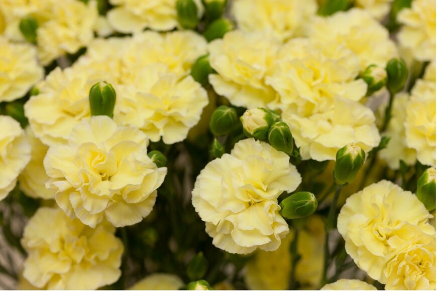 母の日のプレゼントとしてお馴染みの花、カーネーション。春と秋に開花する多年草で、赤や黄色、ピンクや白、紫や複色などの花色が揃っています。