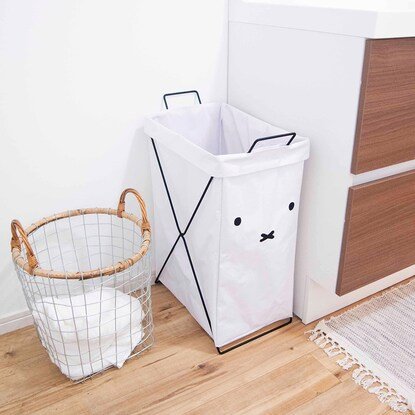 色によってミッフィーのデザインが違うランドリーバスケット。内側はPEコーティングになっているため、濡れたタオルや衣類を入れても安心です。ライトグレーは、お着替え中のミッフィーが可愛らしいデザイン。あまりの可愛さに追加購入するミッフィーファンもいるようです。