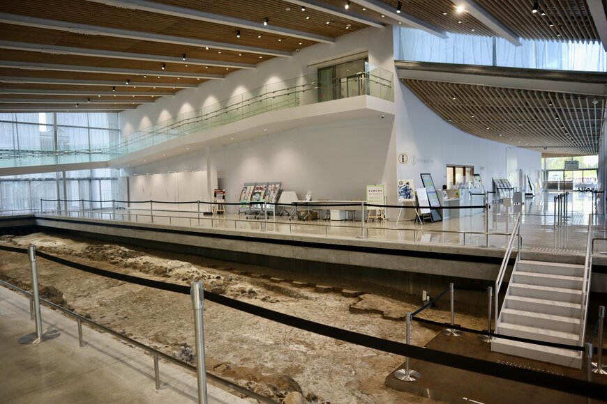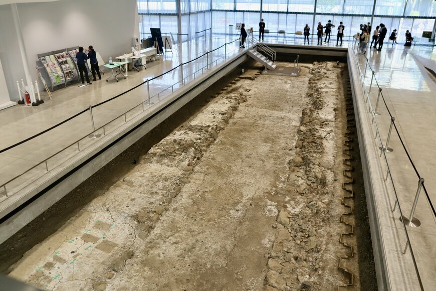 博物館を建てる際、家康が駿府城主だった頃に造られたと思われる道が33メートルに渡って発見されました。駿府城下の遺構をそのまま館内に取り入れて公開するという、全国の博物館でも珍しい取り組みを行っています。