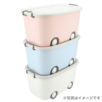 カラーは、「ライトグレー/ピンク」・「ライトグレー/ライトブルー」・「ライトグレー/ホワイト」の3色があります。写真のように、3段まで積み重ねて使うこともできます。カラーごとに中に入れるものを変えて、用途別に使い分けても良さそうです。