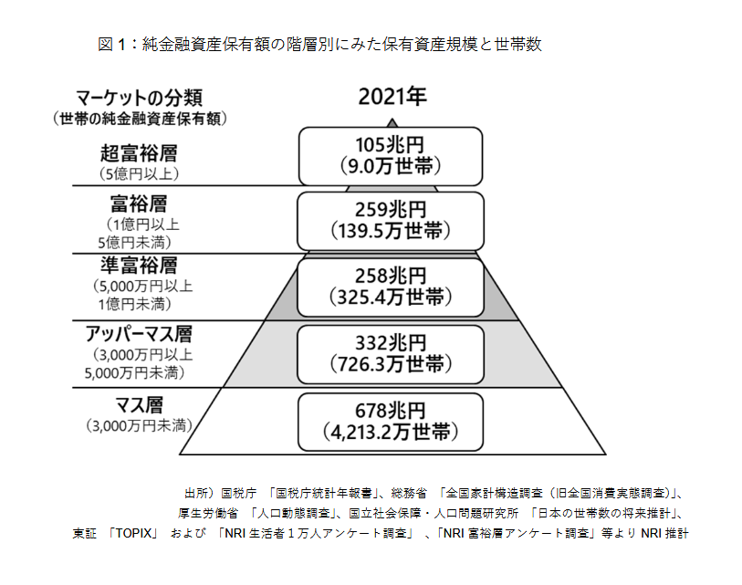 - アッパーマス層(3000万円以上5000万円未満):726万3000世帯