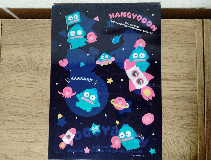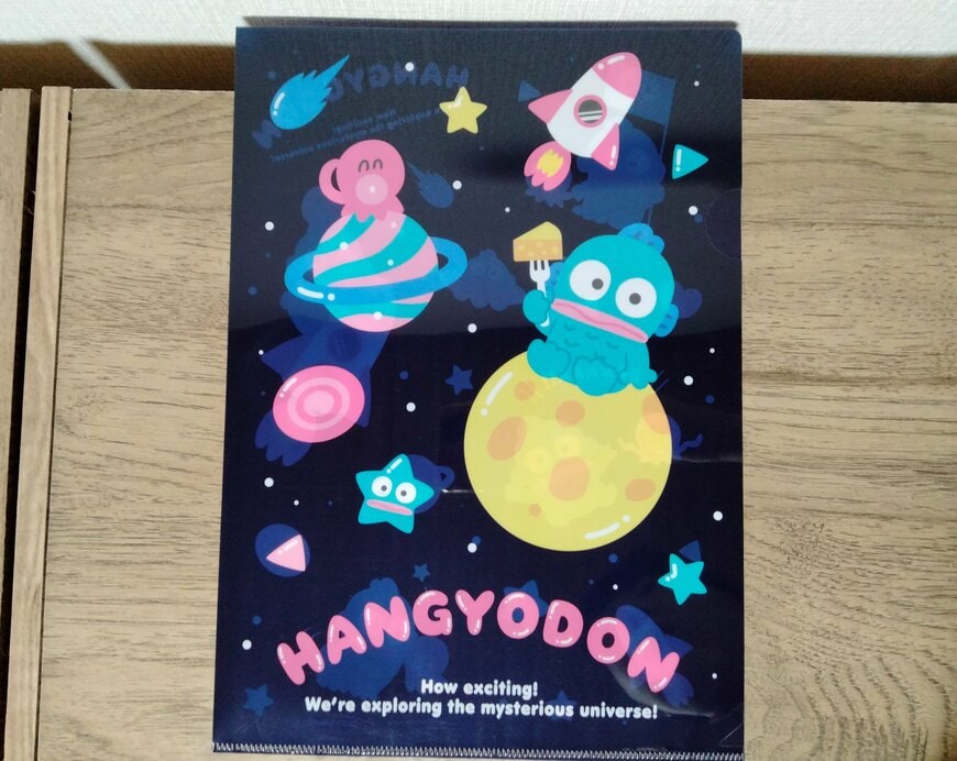 裏面はロケットに乗ったり旗を持ったりしているハンギョドンがかわいいデザインとなっています。宇宙空間を思わせるブルーカラーもおしゃれなファイルです。