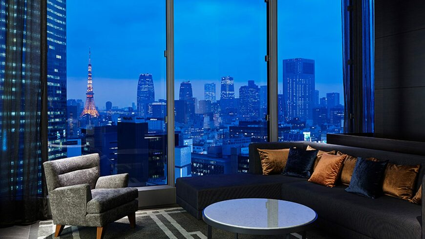 新橋駅から徒歩約5分、東銀座・銀座駅より徒歩約7分。銀座随一の眺望をもつ高層ホテルで、煌めく夜景とともにスタイリッシュな寛ぎのひとときを過ごせます。