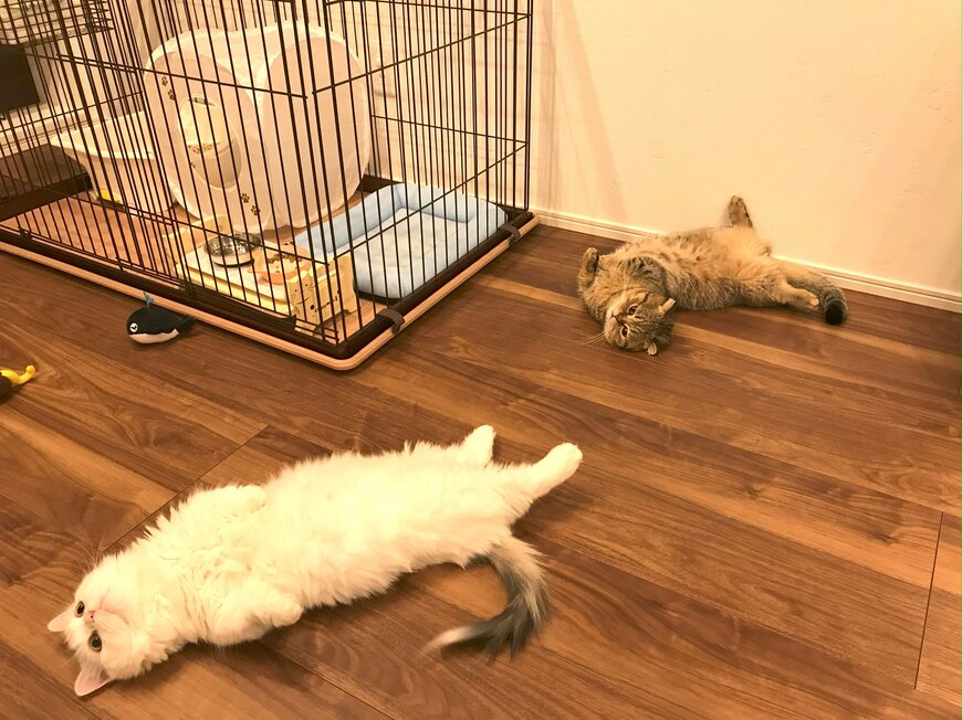2匹揃ってヘソ天をする猫ちゃんたちの、可愛い光景が話題