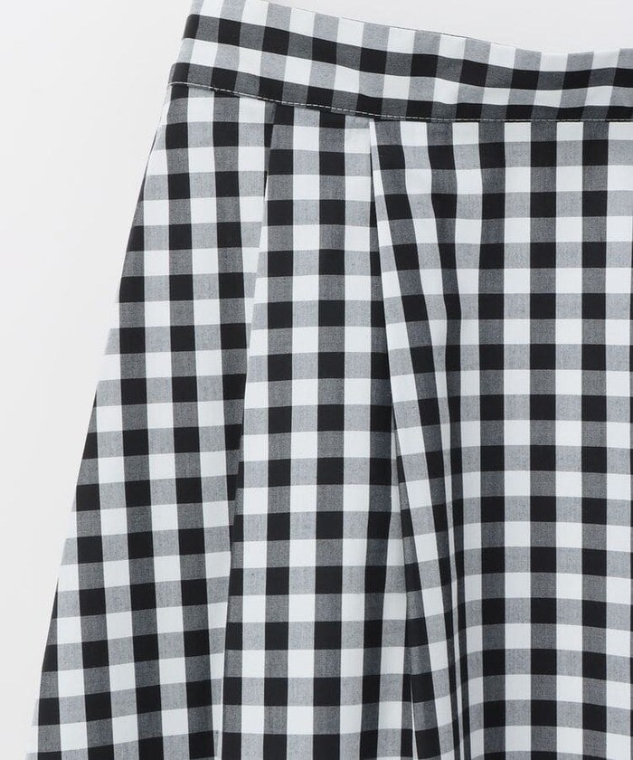 左脇ファスナー開き仕様です。後ろ部分はウエストゴム仕様となっているので、お腹周りにゆとりがあります。ストレスを感じにくい履き心地のスカートです。