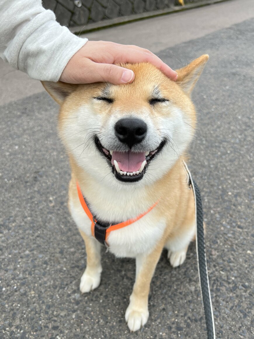 律儀にお座りしながら飼い主に撫でられている様子もなんともチャーミング。喜びを全身で表現しているかのような姿に、一瞬わんちゃんであることを忘れてしまいそうです。