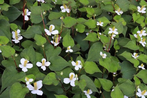 ドクダミはほとんど手をかけなくても育ち、日当たりに恵まれない日陰でも栽培可能。繁殖力旺盛で、地下茎を長く伸ばして広範囲に広がります。