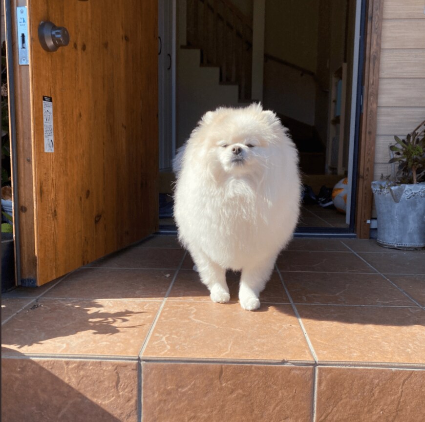 散歩に行きたいのでは…!?白ポメラニアンの「ちくわ」ちゃんが話題に