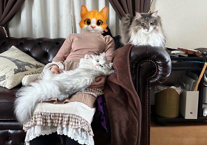 長毛の3ニャンをモフモフして、毎日癒されています(笑)。