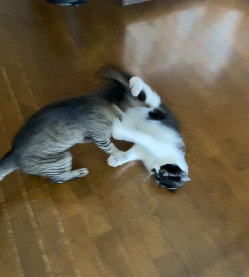 そして2枚目には、勢いよくじゃれ合う2匹の姿がありました。