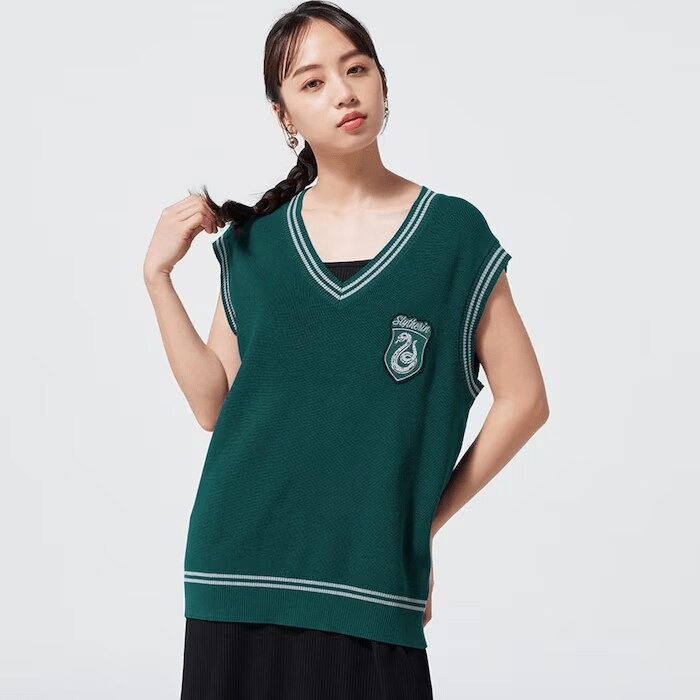 今回は「マイファーストマジック」をテーマに、初期の映画に焦点をあてたコレクションがラインナップ。作品でもおなじみのホグワーツ4つの寮のカラーと紋章を用いたスクールテイストのニットベストとなっています。