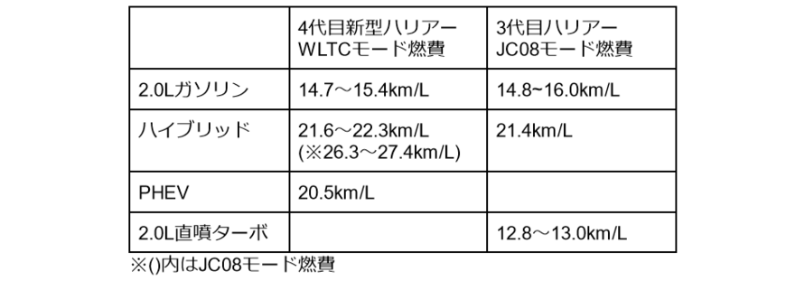 「新型ハリアー VS 3代目ハリアー」燃費の比較