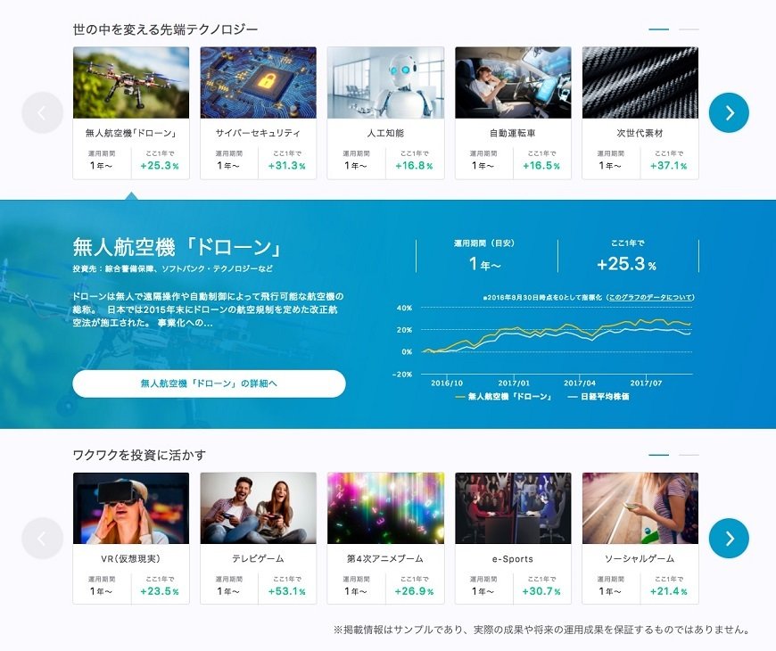 同社が提案する投資は、従来の証券会社が提供してきた投資とは一線を画しています。個別の企業ではなく、投資家が気に入った「テーマ」に投資する、というのです。「ショッピング感覚の投資」といいますが、一体どういったサービスなのでしょうか。