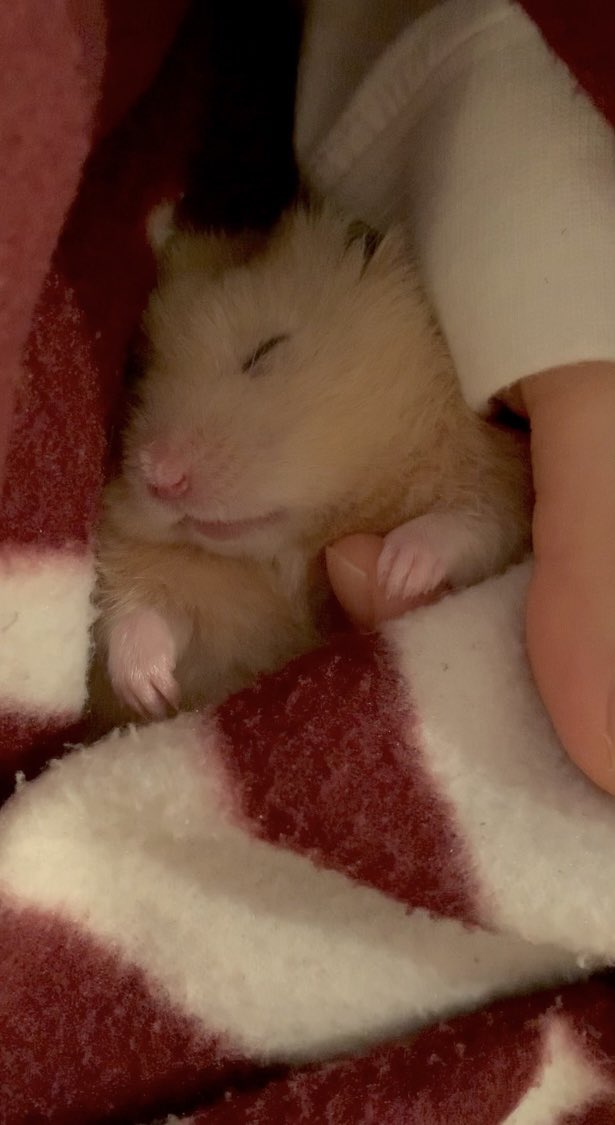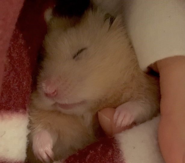 話題になったのは1歳6ヶ月のハムスターの男の子「いち」くん。写真に写るいちくんは、まさに安眠を貪るといった具合ですが……?