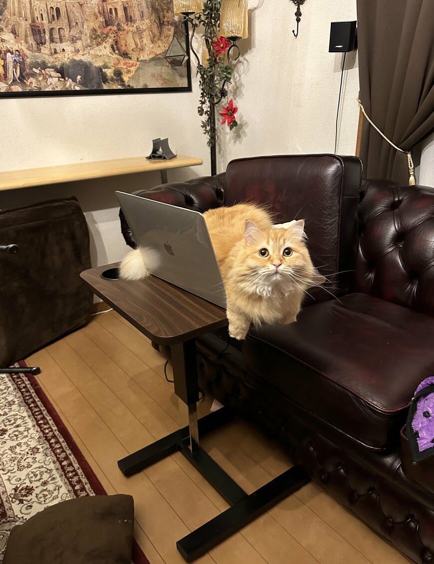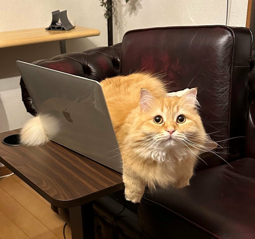 飼い主さんのパソコンにモッフリと座り込む猫ちゃんの可愛い光景がTwitterで注目を集めています。