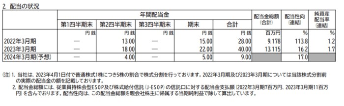 ※2023年4月1日付で普通株式1株につき5株の割合で株式分割を行ったため分割後で調整。