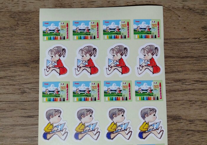 こちらは「ぺんてるくれよん」デザインのシールです。1シートに20枚のシールがついてきます。