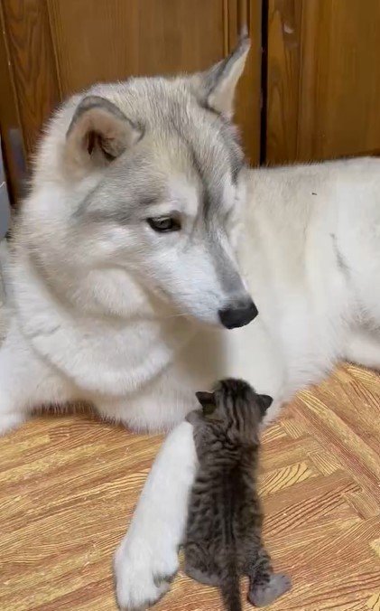SNSで反響を呼んでいる、ヨチヨチ歩きの子猫ちゃんを優しくお世話するハスキー犬の、尊さがあふれるワンシーンをご紹介しました。