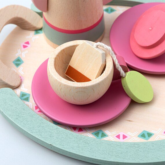 ティーパックも木製! トレイのデザインがかわいいのも素敵な「ティータイム 木製おままごとセット」