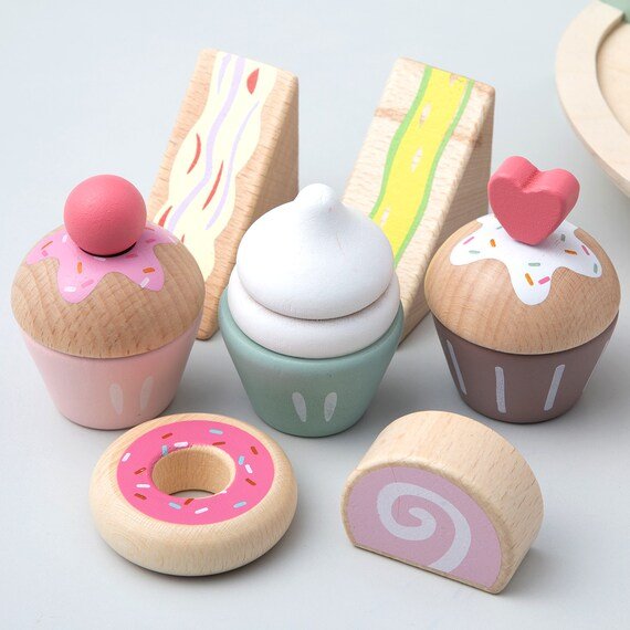 サンドイッチが2つ・カップケーキが3つ・ドーナツとロールケーキが1つ、合計で7つのお菓子のおもちゃがついてきます。おままごと遊びをより楽しくしてくれそうです。