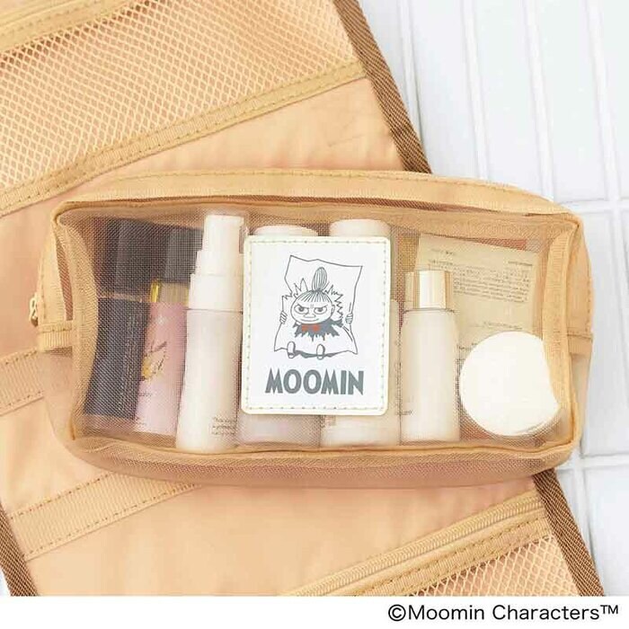 メイクや洗面用具のほかにも、充電器やコード類などガジェットの整理にも使えます。メッシュ素材のポーチにはかわいいリトルミイのワッペン付き。バスグッズなどを入れれば、お風呂場に持ち込んで便利に使えます。外側は撥水加工なので、洗面まわりやアウトドアなど幅広く活躍してくれるアイテムです。