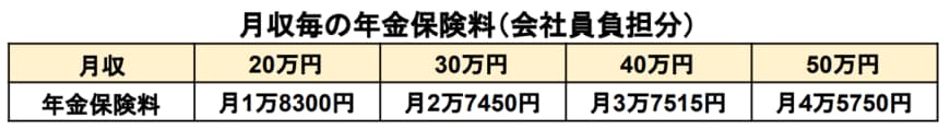 厚生年金は、収入によって保険料が変わります。2023年度における月収毎の年金保険料は以下のとおりです。