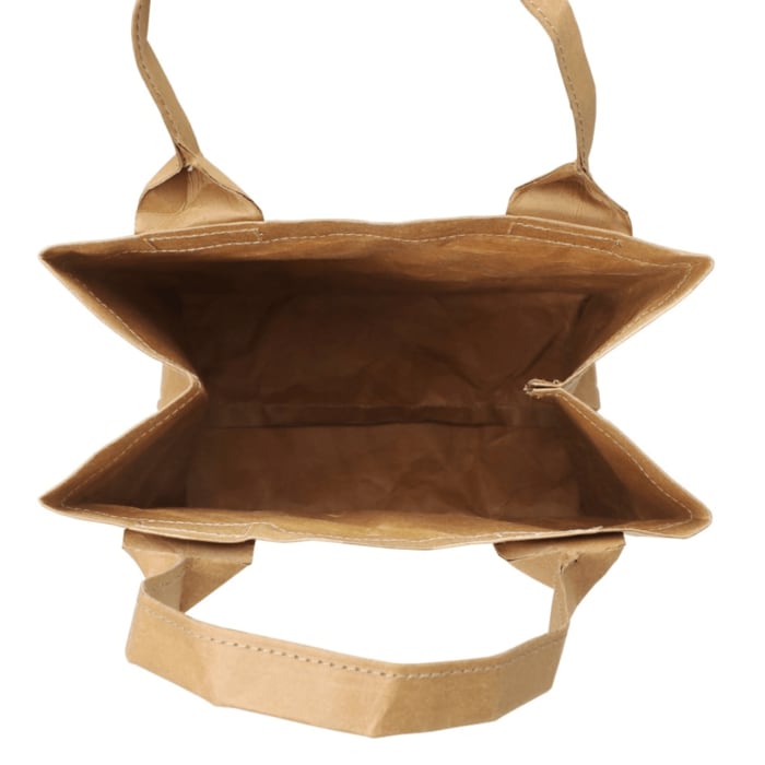 一瞬、紙袋に見える少しくしゃっとしたデザインもお洒落。サイズは、(幅×奥行き×高さ)20.5x11.5x26.2cmとなっています。マチもたっぷりあるため、お弁当いれから、コンビニ、もちろんスターバックスでの買い出しに使うのもいい。