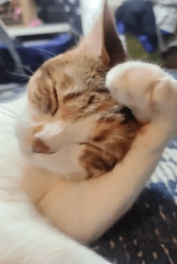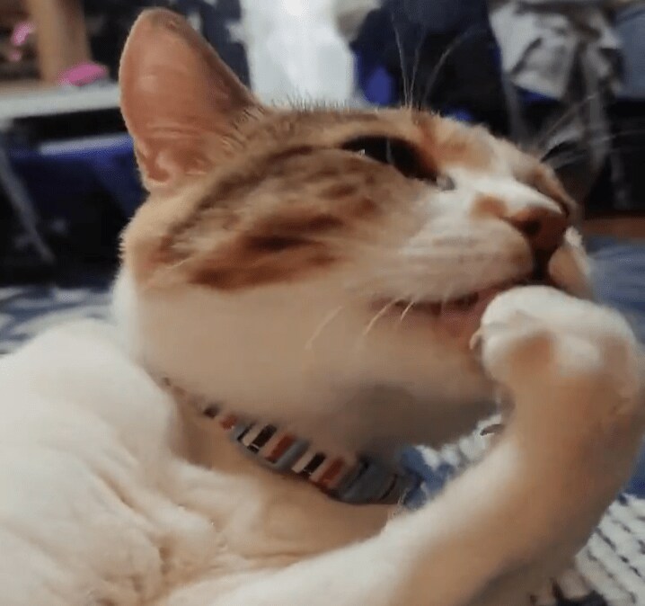 動画の子の名前はテンちゃんです。夜リビングでくつろいでいるときの姿を撮りました。一生懸命毛づくろい中。