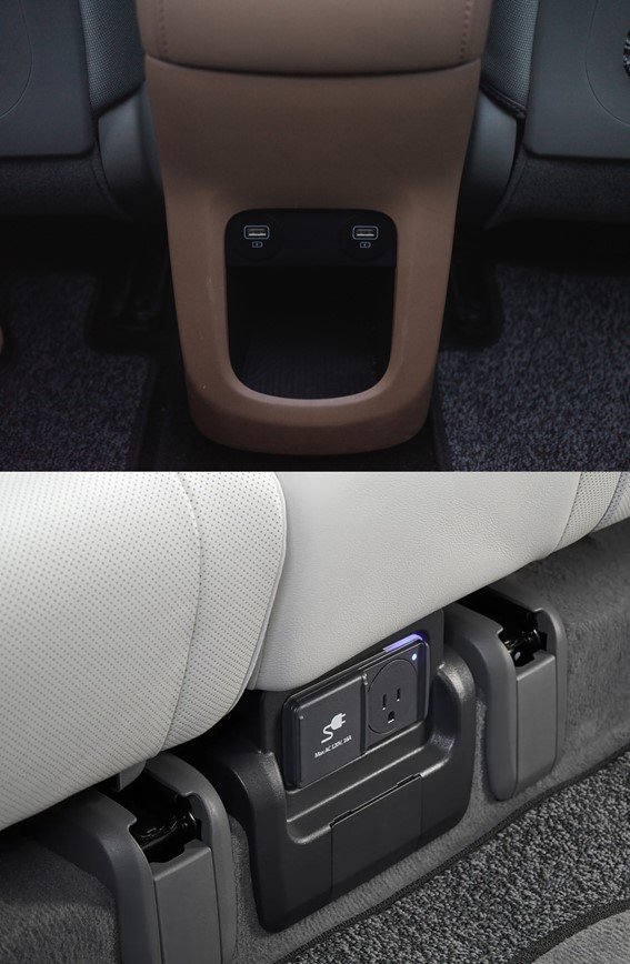 あとは実用性もしっかり考えられています。後部座席にはUSBポートと100Vのコンセントが装備されていてドライヤーも使える仕様。
