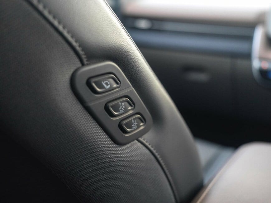 書斎の高級チェア顔負けのリラクゼーション感を実現するこの椅子なら長距離ドライブの充電時間を極上の休息タイムに変えてくれます。後部座席のシートも横幅があって足元が驚くほど広い!少しだけリクライニングできるので子供が疲れた時も窮屈さを感じさせずにドライブを続けられます。