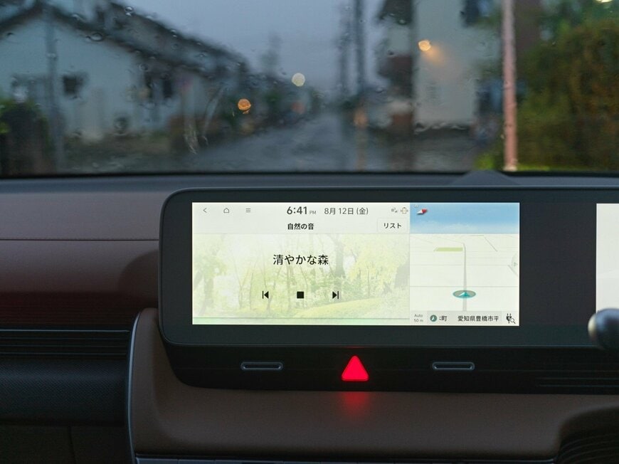 あとは車内で森や波の音が流せるという変わり種機能も。なんだか運転手まで眠くなっちゃいそうですが、遮音性が高い車内で森の音を流すのは朝の通勤に良いなと感じました。