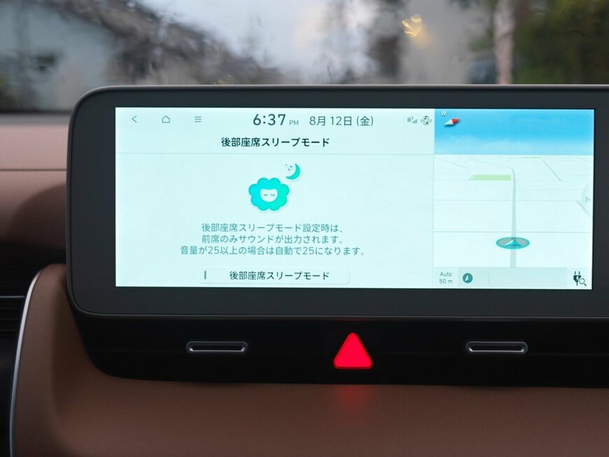 韓国のプロダクトは子どもへの目配せが行き届いているという特徴があります。IONIQ5には「後部座席スリープモード」という機能が備わっており、子供が眠ったら後部座席のみ音量を下げてくれます。これ、他のどの車でも見かけませんがスピーカーは後部ドアにも付いているので意外と重要ですよね。