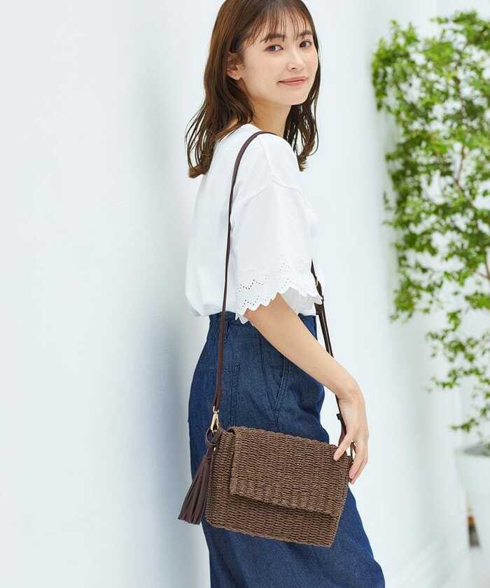 好みによって取り外しできるタッセルがおしゃれな「タッセル付雑材ショルダー」です。価格は2480円(税込)です。