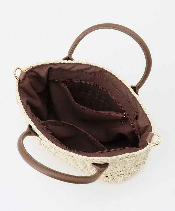 雑材製のカゴバッグは透け感が気になることもあります。しかし、こちらのアイテムは裏地もしっかりとついているので、中身が見えません。ポケットが2つついているので、小物を整理して収納することも可能です。