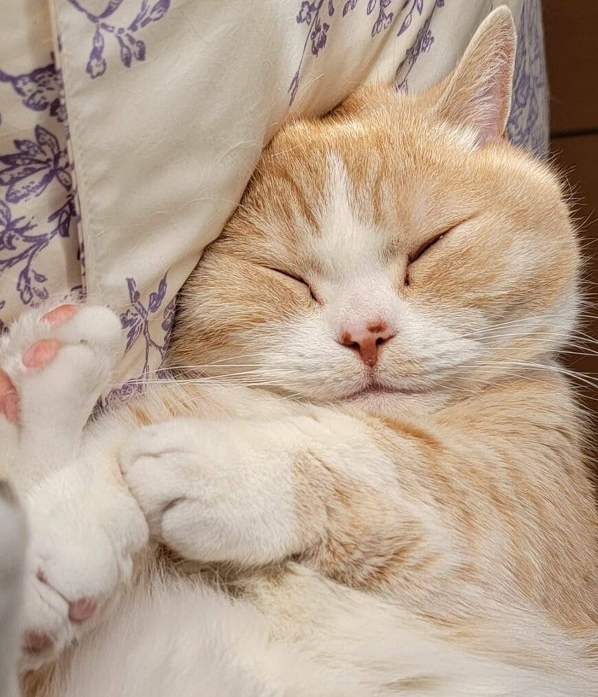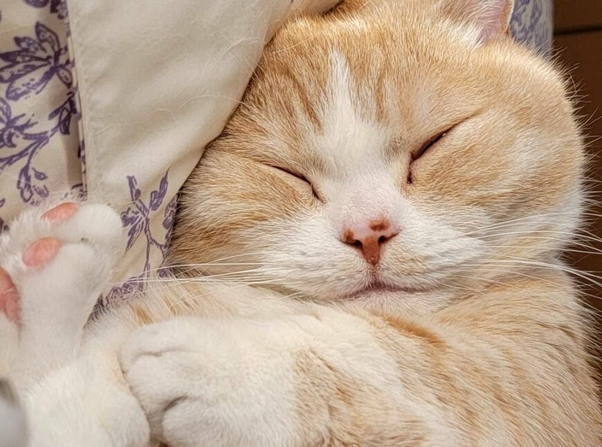 SNSで反響を呼んでいる、起床した飼い主さんが撮影した、幸せそうに眠る猫ちゃんの写真をご紹介しました。