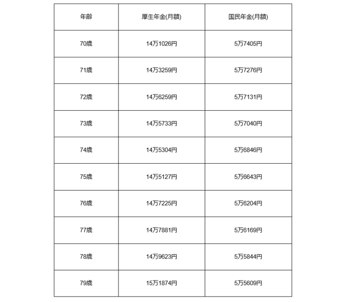 2. 【一覧表】70~79歳の老齢年金月額はいくらか