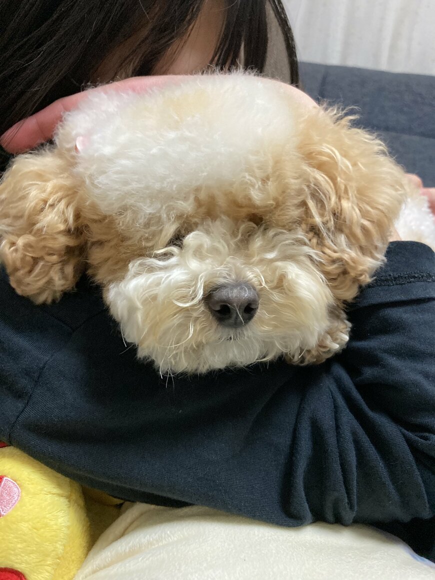 話題になったのはトイプードルの「ハチミツ」くん。写真に写るハチミツくんは、飼い主に抱っこされてくつろいでいる様子ですが……?