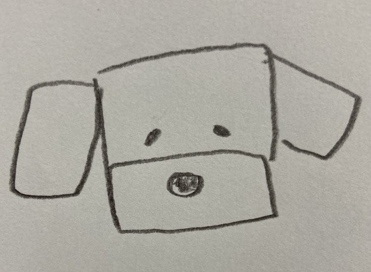 「まって、今ウチの犬のフォルムおかしい。絵に描ける!」というコメントとともに投稿されたのは、1枚の写真でした。